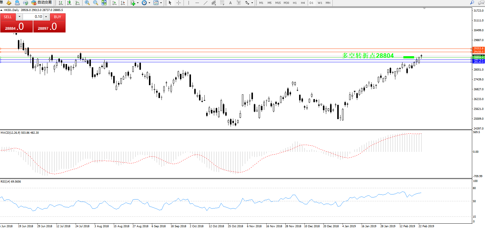 亚洲股市全线上涨,中国内地股市飙涨,沪深两市高开高走,涨幅均超5%,成交额达10406亿元,创2016年以来新高,也是继2015年以来首次达到万亿大关,香港恒生指数高开后在平盘线上方震荡,盘中一度突破29000点,截至收盘小幅上涨,报28959点。并推动亚洲其他市场走高。中美贸易谈判接连传出好消息,据央视新闻报道,美国当地时间224日下午,第七轮中美经贸高级别磋商在美国首都华盛顿结束。美国总统特朗普表示,磋商取得实质性进展,美国将延后原定于31日对中国产品加征关税的措施。