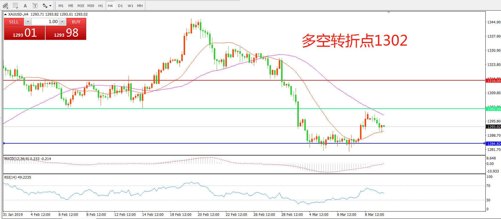 上周五公布的非农数据让金融市场颇为震惊,就业人数仅仅增加了2万人,受此因素影响,黄金一度触及1300关口。同时,美联储主席鲍威尔也再次表示,他们不受特朗普因素的影响,认为目前并不急于调整利率。这对于避险资产的黄金来说无疑是个好消息。但周五大涨后,部分投资者选择获利了结,导致金价小幅下跌,最终金价微跌,收报1293.3美元/盎司。