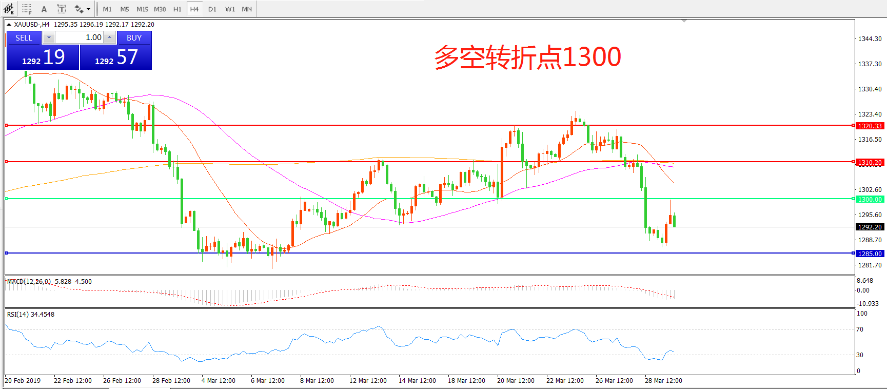上周美债收益率倒挂引发市场对美国经济前景的疑虑,美元本周初陷于颓势,然而随着美债收益率回升,贵金属市场血流成河,现货黄金失守关键心理关口1300水平,当周跌超20美元,创4周来最大周跌幅。而整个3月也可能成为黄金市场过去8个月里表现最差的一个月。周五黄金晚间抹去跌幅,回升逼近1300美元/盎司关口。但好景不长,金价随后掉头下行,最终收报于1292.20美元/盎司,本周非农数据将再度袭来,重点关注。