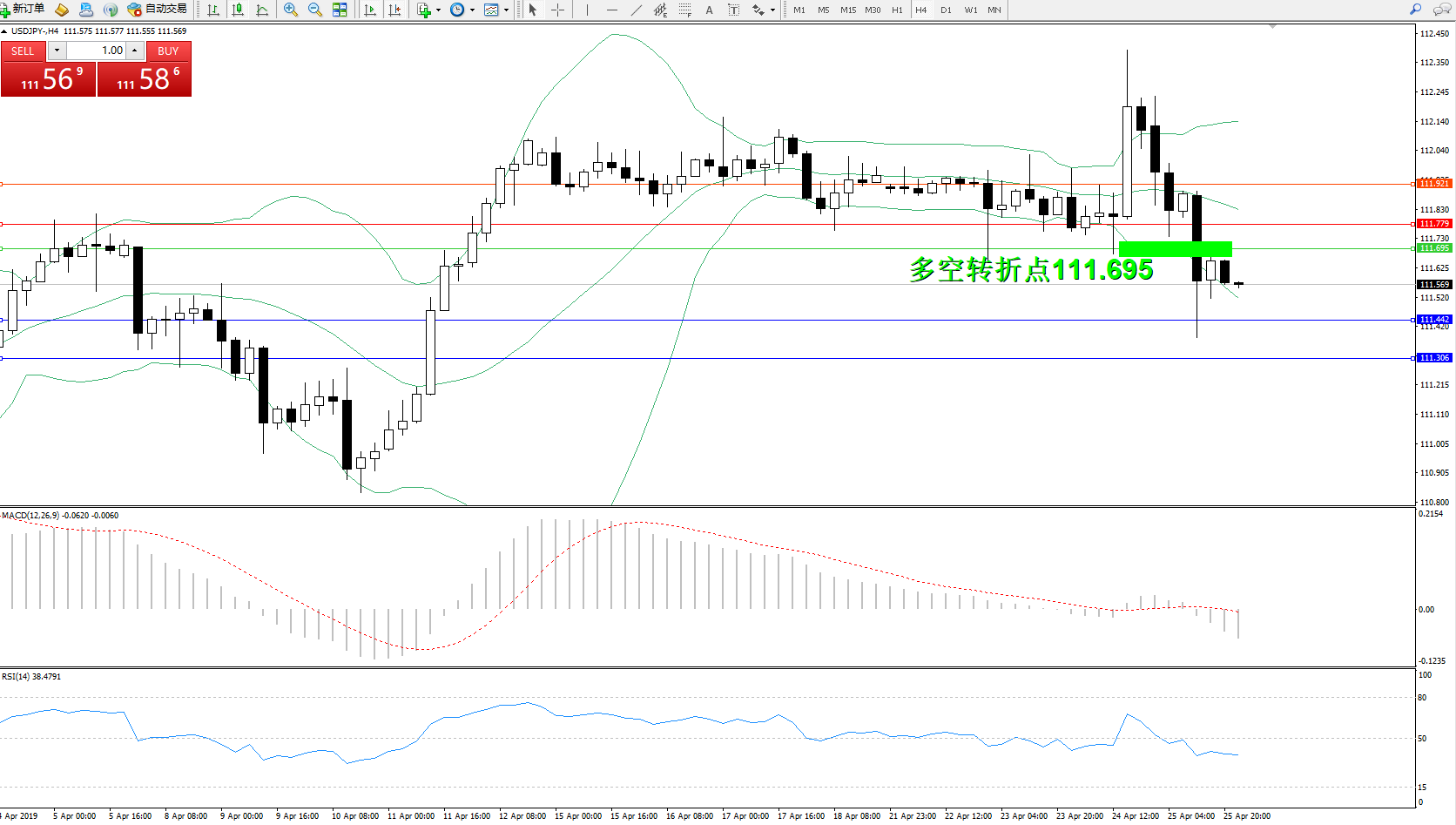 全球经济下行风险增加,美元成为避险资产被市场追捧。美元兑日元持续下跌。日本央行公布4月利率决议,日本央行维持决议不变,部分措辞鸽派,但由于鸽派程度没有超出市场预期,因此日元整体承压幅度有限;全球经济的不确定性引起了政策制定者的关注,日本央行至少在2020年春季之前,利率将保持在目前的水平,但如果经济衰退,时间框架可能会长得多。因为似乎央行缺乏选择,助长了对避险资产的需求。股市的下跌和政府债券收益率的下降增加了日元的强势。