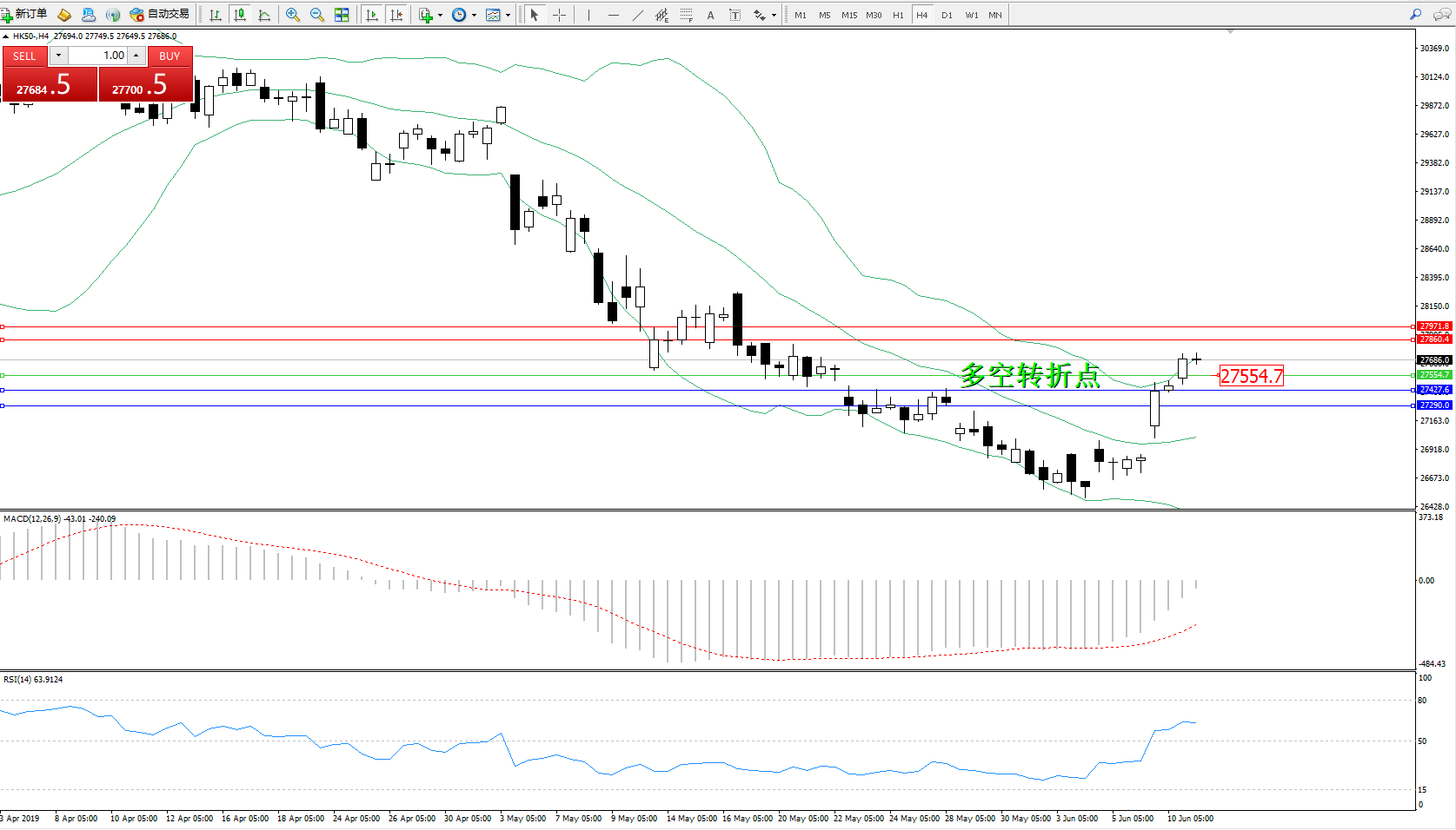 香港恒生指数6月11日收盘上涨210.70点,涨幅0.76%,报27789.34点;港股仍然面临很多不确定性,未来市场调整结束需要等待外部环境改善,以及港股盈利确认见底回升。如果6月-7月上旬境内外几个风险因素释放,届时调整幅度可能会较充分。暂时来说港股经历5月一波下跌浪后,已逐步消化基本面的不确定因素,但能否企稳回升,还要进一步观察。进入6月,港股反弹的空间和持久力有限,市场调整仍会是未来一段时间的主旋律,投资者仍需控制仓位参与,不宜追涨杀跌。