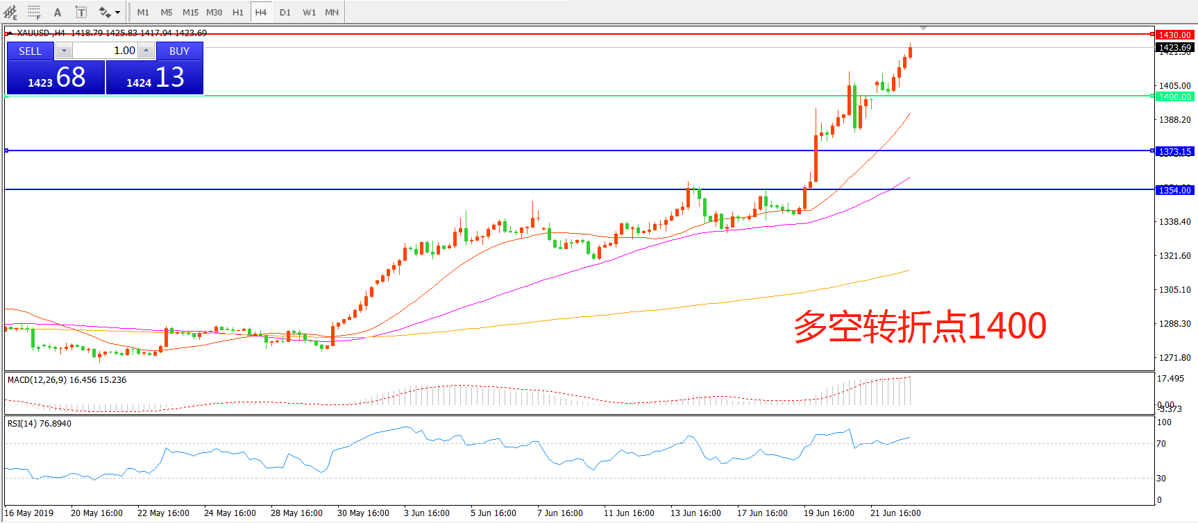 交易策略:在1400.00之上看涨,目标1430.00 1490.00