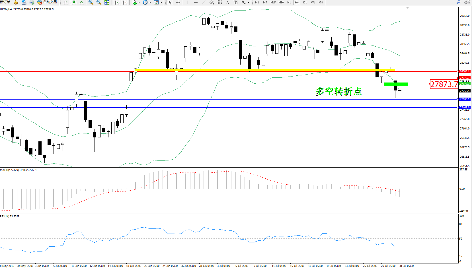 香港天文台考虑在中午12:00到下午14:00发布8号风球预警。8号风球是烈风或暴风的信号,也是香港股票交易市场休市,各阶层工作全面暂停的标志。香港恒生指数7月31日(周三)收盘下跌368.75点,跌幅1.31%,报27777.75点;港股今日低开低走,恒指先后失守二万八关口、50天线。由于天文台13点40分发出8号台风讯号,香港股市提前于13点55分休市。北京时间8月1日凌晨2时,美联储宣布下调联邦基金利率25个基点至2.00%-2.25%。这是2008年12月以来美联储的首次降息。