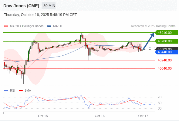 在 46440.00 之上,看涨,目标价位为 46700.00 ,然后为 46910.00 。