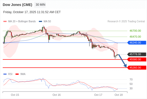 在 46240.00 之下,看跌,目标价位为 45580.00 ,然后为 45260.00 。