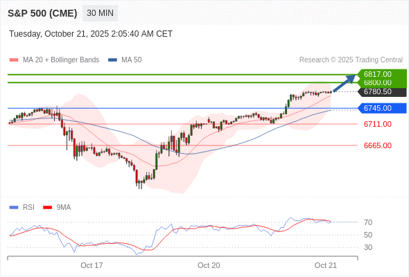 在 6745.00 之上,看涨,目标价位为 6800.00 ,然后为 6817.00 。