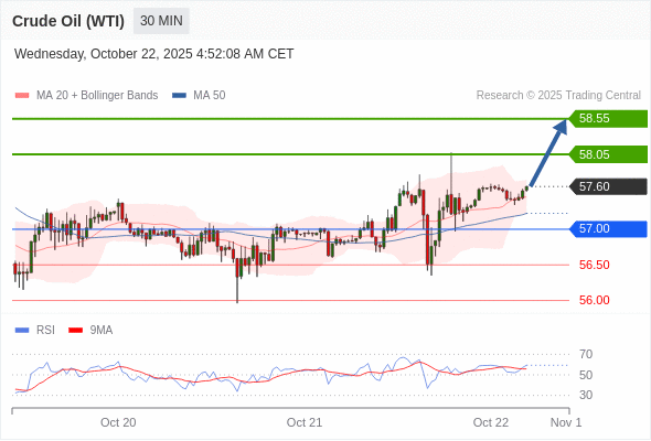 在 57.00 之上,看涨,目标价位为 58.05 ,然后为 58.55 。