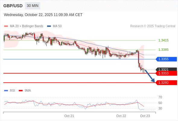 在 1.3355 之下,看跌,目标价位为 1.3310 ,然后为 1.3280 。
