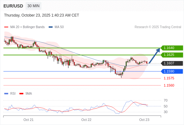 在 1.1590 之上,看涨,目标价位为 1.1625 ,然后为 1.1640 。