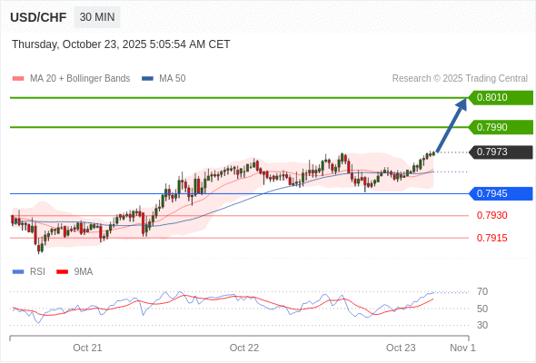 在 0.7945 之上,看涨,目标价位为 0.7990 ,然后为 0.8010 。