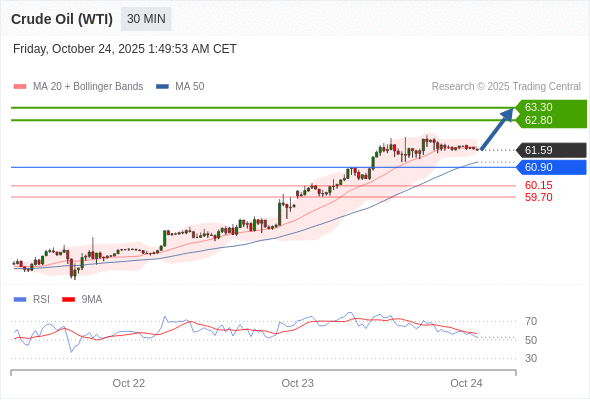 在 60.90 之上,看涨,目标价位为 62.80 ,然后为 63.30 。