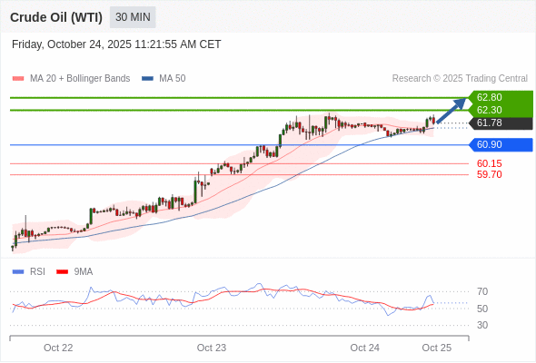 在 60.90 之上,看涨,目标价位为 62.30 ,然后为 62.80 。