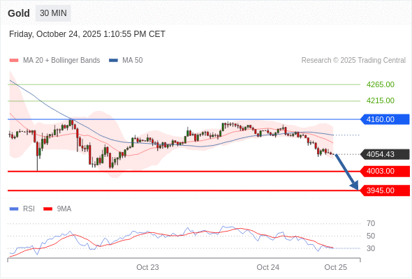 交易策略: 在 4160.00 之下,看跌,目标价位为 4003.00 ,然后为 3945.00 。