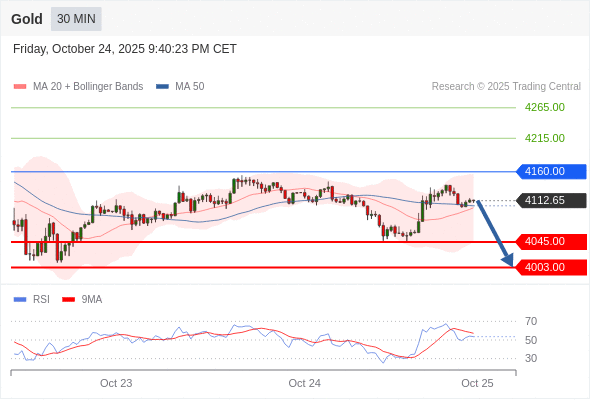 在 4160.00 之下,看跌,目标价位为 4045.00 ,然后为 4003.00 。