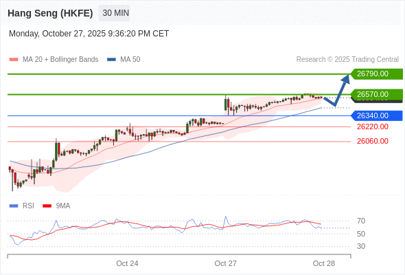在 26340.00 之上,看涨,目标价位为 26570.00 ,然后为 26790.00 。