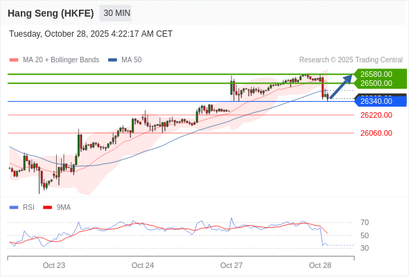交易策略: 在 26340.00 之上,看涨,目标价位为 26500.00 ,然后为 26580.00 。