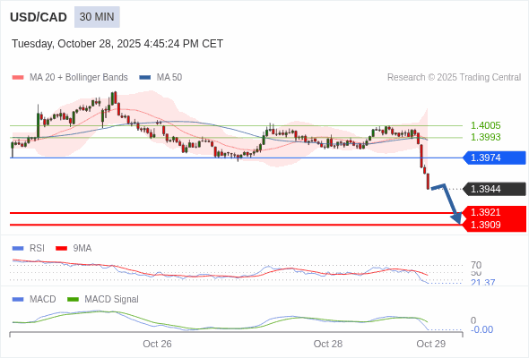 交易策略: 看跌,在 1.3974 之下。