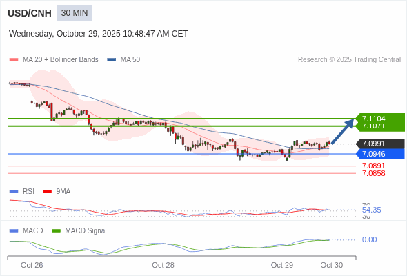 替代方案: 在7.0946以下,期待7.0891和7.0858。