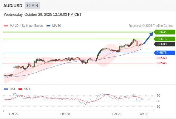 在 0.6575 之上,看涨,目标价位为 0.6615 ,然后为 0.6635 。