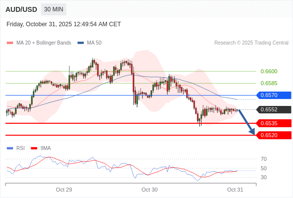 交易策略: 在 0.6570 之下,看跌,目标价位为 0.6535 ,然后为 0.6520 。