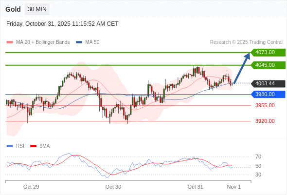 在 3980.00 之上,看涨,目标价位为 4045.00 ,然后为 4073.00 。