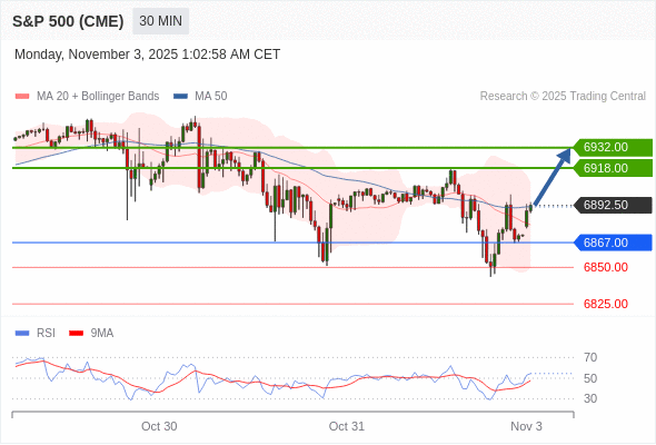 在 6867.00 之上,看涨,目标价位为 6918.00 ,然后为 6932.00 。