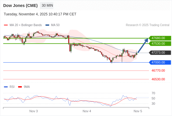 在 47000.00 之上,看涨,目标价位为 47530.00 ,然后为 47680.00 。