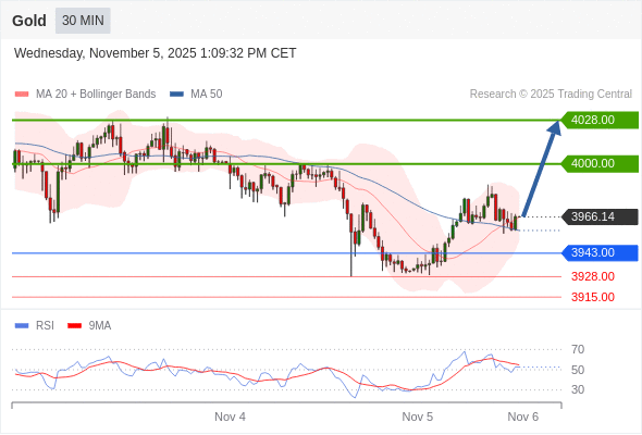 在 3943.00 之上,看涨,目标价位为 4000.00 ,然后为 4028.00 。