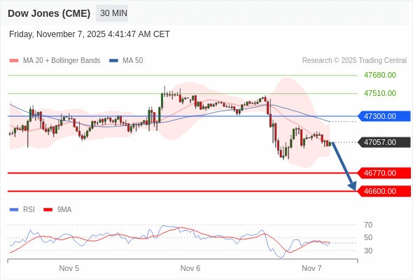 在 47300.00 之下,看跌,目标价位为 46770.00 ,然后为 46600.00 。