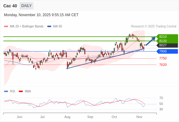 Cac 40 短线: 超短线(当日内)支撑位在7900附近。