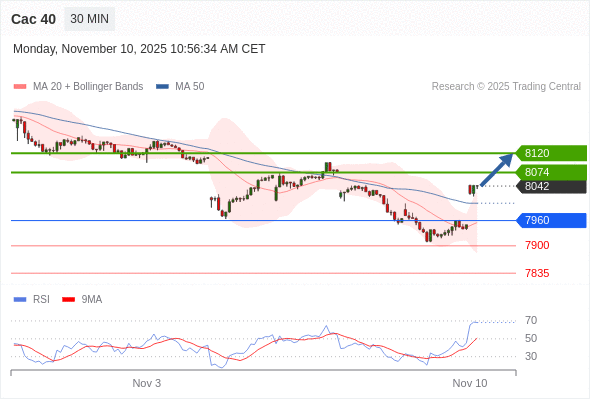 Cac 40 当日内: 持续上升。