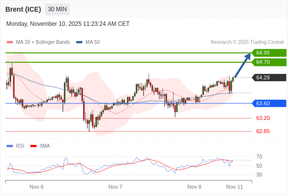 在 63.60 之上,看涨,目标价位为 64.70 ,然后为 64.95 。