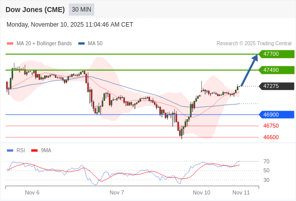 在 46900 之上,看涨,目标价位为 47490 ,然后为 47700 。