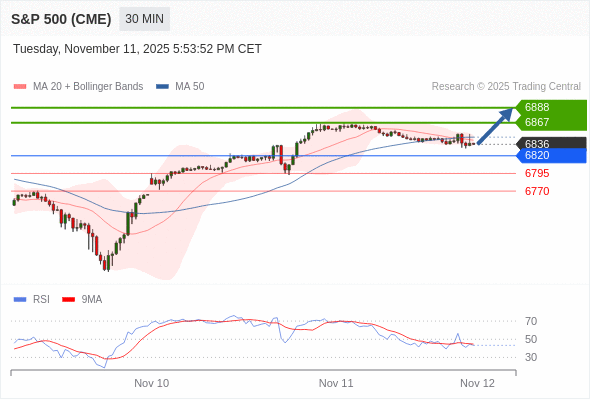 在 6820 之上,看涨,目标价位为 6867 ,然后为 6888 。