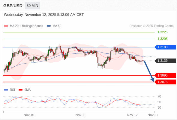 在 1.3180 之下,看跌,目标价位为 1.3095 ,然后为 1.3075 。