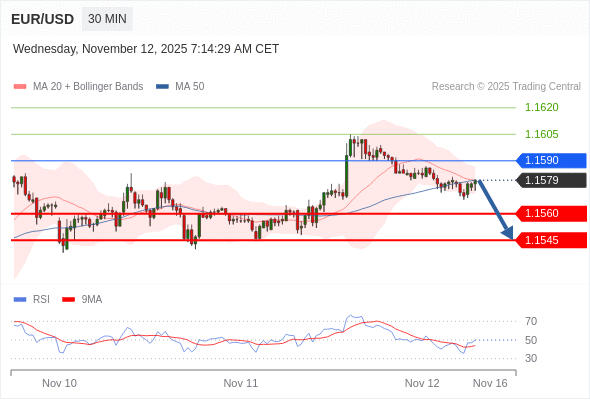 交易策略: 在 1.1590 之下,看跌,目标价位为 1.1560 ,然后为 1.1545 。