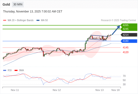 在 4180 之上,看涨,目标价位为 4245 ,然后为 4265 。