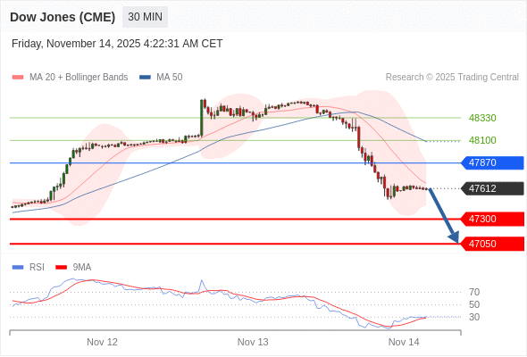 在 47870 之下,看跌,目标价位为 47300 ,然后为 47050 。