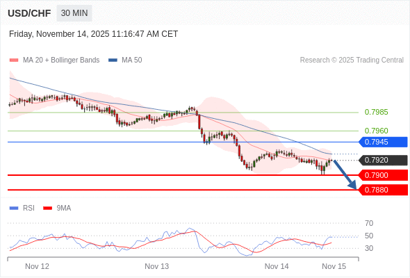 在 0.7945 之下,看跌,目标价位为 0.7900 ,然后为 0.7880 。