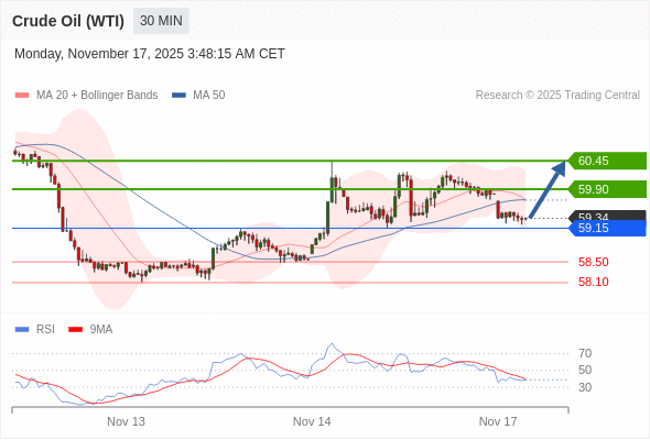 在 59.15 之上,看涨,目标价位为 59.90 ,然后为 60.45 。