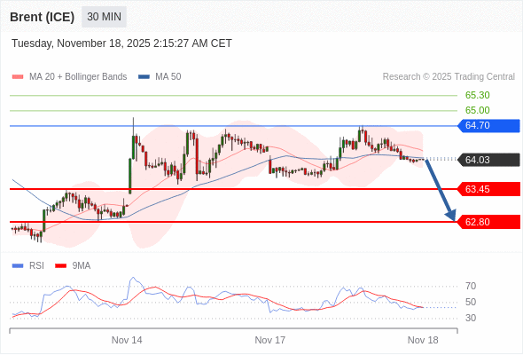 在 64.70 之下,看跌,目标价位为 63.45 ,然后为 62.80 。