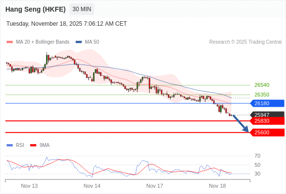 在 26180 之下,看跌,目标价位为 25830 ,然后为 25600 。