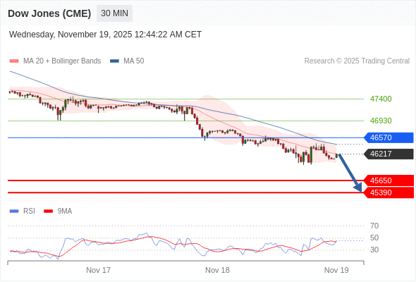在 46570 之下,看跌,目标价位为 45650 ,然后为 45390 。