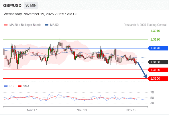 在 1.3170 之下,看跌,目标价位为 1.3120 ,然后为 1.3100 。