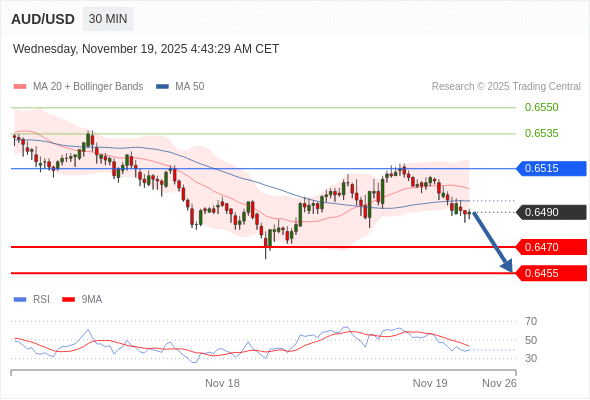 在 0.6515 之下,看跌,目标价位为 0.6470 ,然后为 0.6455 。