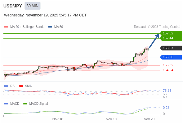 美元/日元 当日内 : RSI是超买的