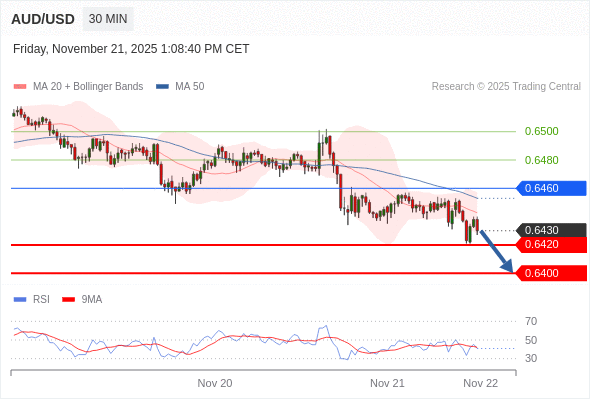 在 0.6480 之下,看跌,目标价位为 0.6420 ,然后为 0.6400 。