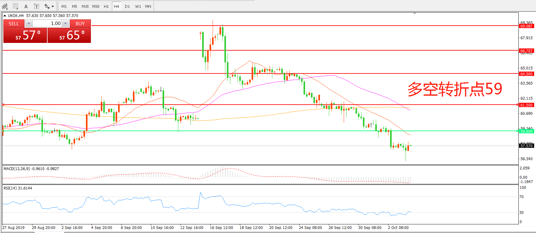 交易策略:在59.00之下看跌,目标57.00    55.00