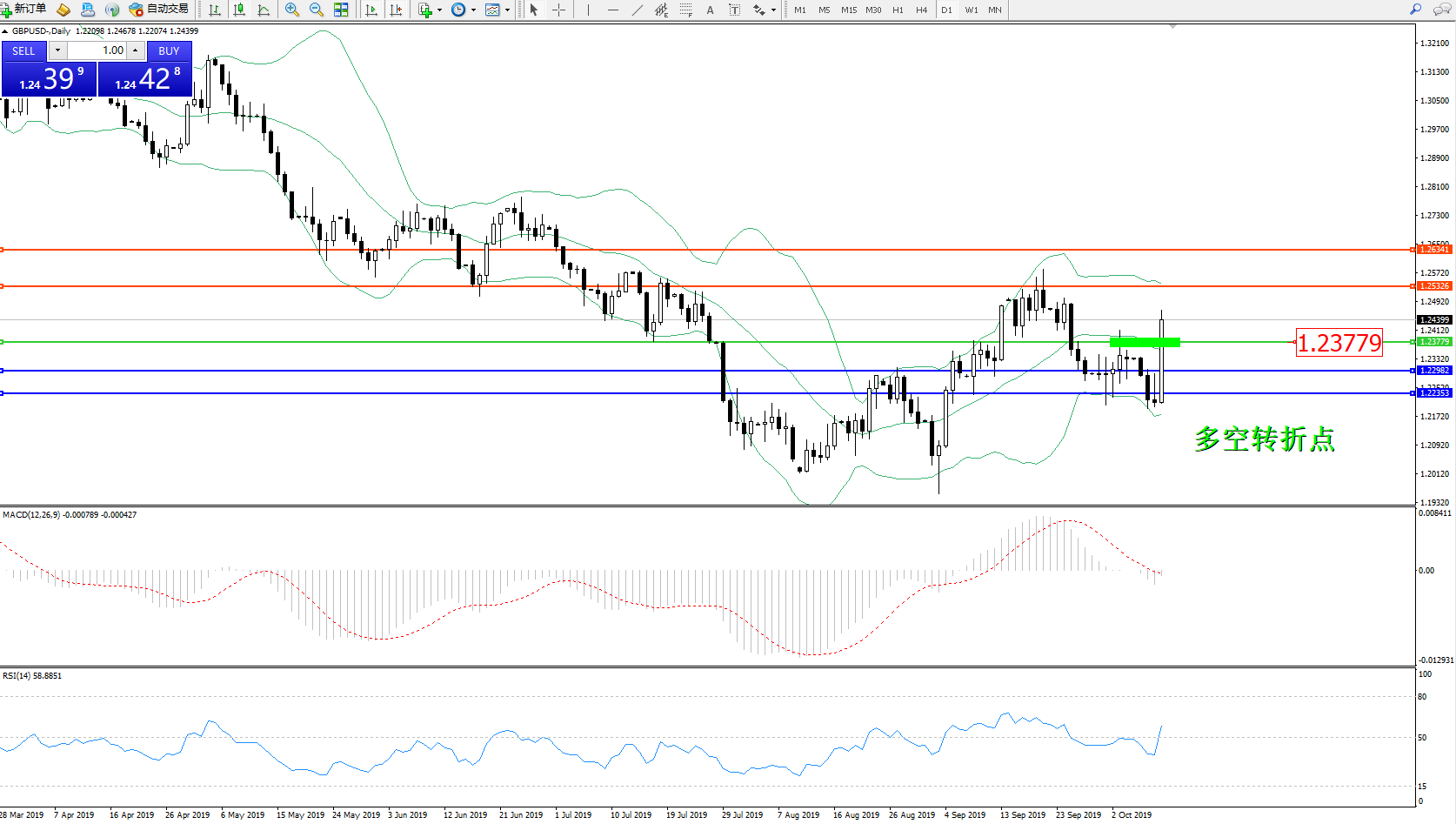 交易策略:1.23779上方看涨,目标1.25326、1.26341