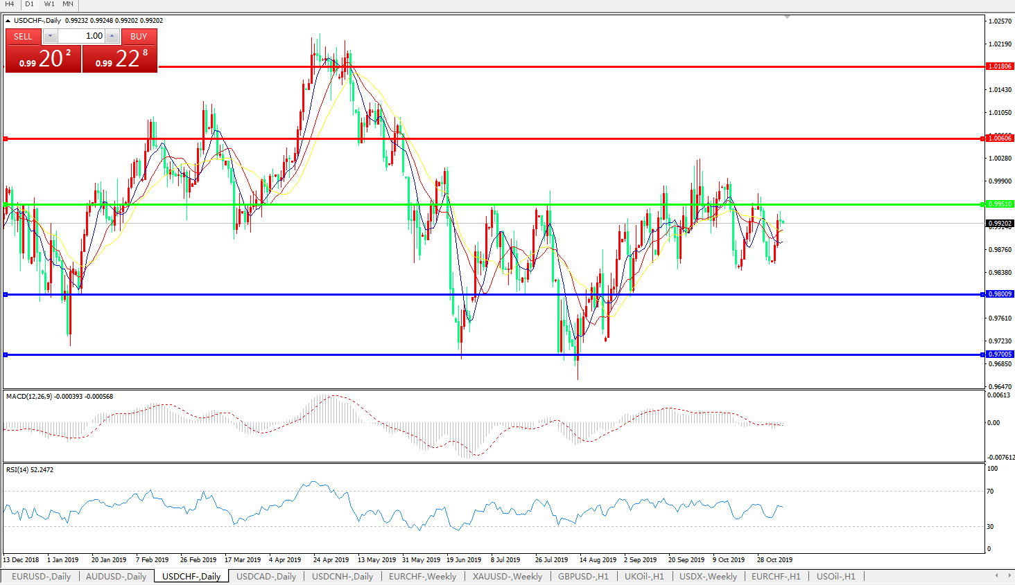 美元指数在周三亚洲时段高位震荡,此前上攻98关口再度遇阻,汇价因而转向横盘蓄势,但仍维持了强势形态。本周以来,全球贸易局势的持续好转对美元汇价起到了推升作用,但之后进一步的上行仍需“实锤”消息落地的推动; 除了贸易利多之外,美元主要对手盘欧元的疲软也带动美指走强。在上周美联储利率“三联降”之后,市场目光转向了欧洲央行在新行长拉加德上任之后的政策走向。对欧洲央行宽松预期的加码,连同大家对德国政府财政宽松预期的进一步失望,也推动了欧元汇价持续走低; 而此前,美元指数两度上攻98关口均遇阻,也显示趋势阻力依旧强劲,且美联储年内加息的预期仍未真正消除。此时,市场就将期待更多基本面经济数据来进一步带动行情,并同时继续对全面贸易走向予以密切留意